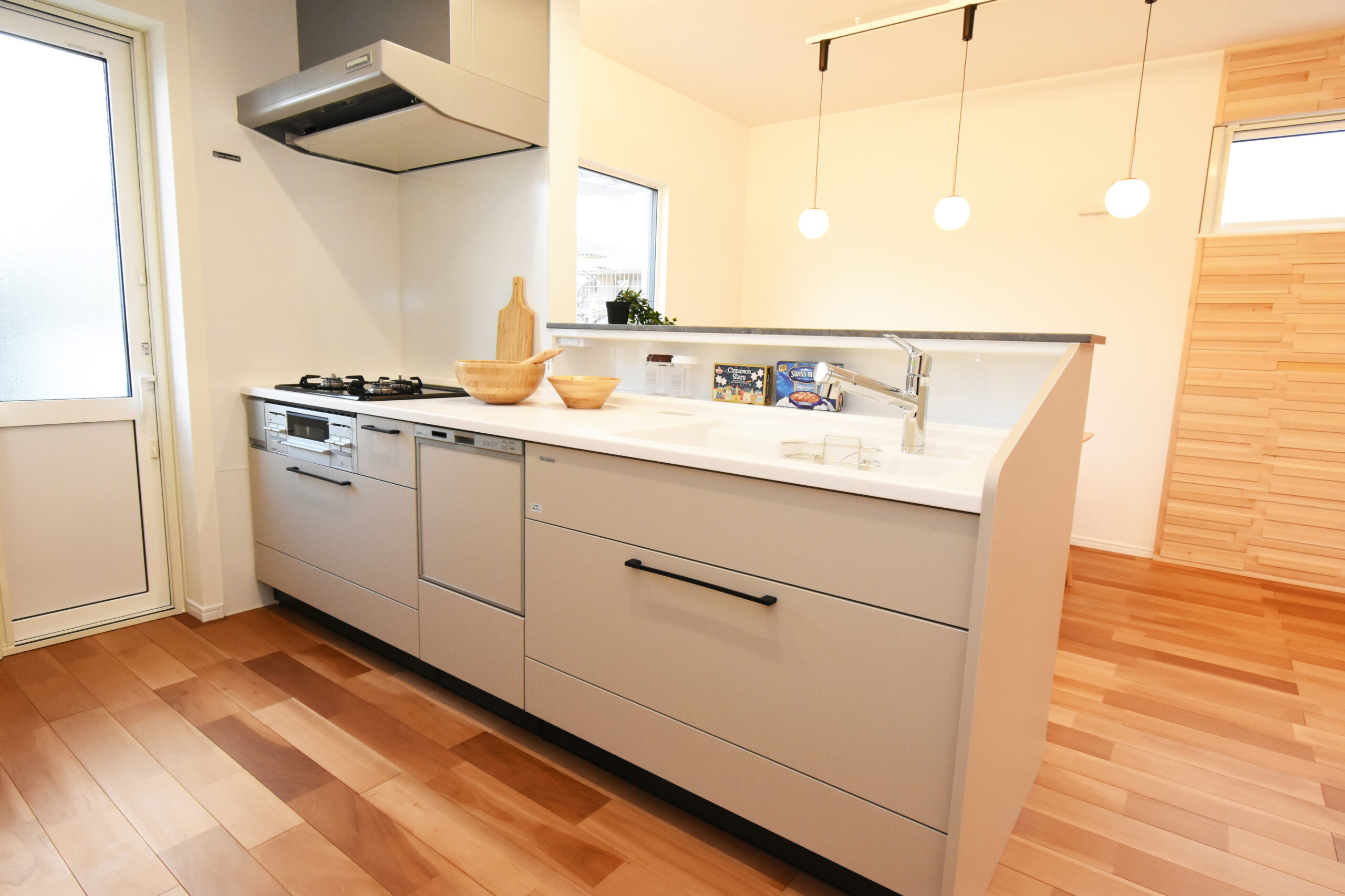一年中快適な室内環境を追求した「KURASU」の家 。その中心となるキッチンには、品質と機能性を長く保ち続ける製品を標準採用しています。標準仕様で、一流のメーカー数社からの選択が可能です。家の性能だけでなく、毎日使う設備の心地よさにもこだわりました。