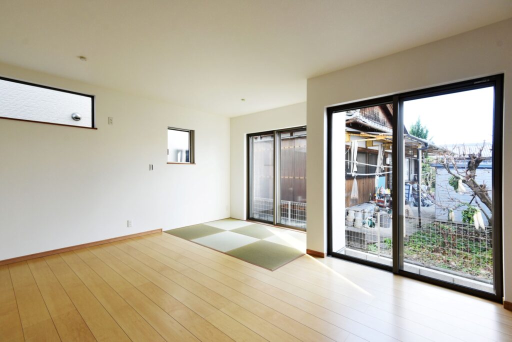 畳コーナーのあるリビング リビングの畳コーナー リビングと段差なくつながる畳スペースです。畳なのでゴロンと寝ころべるし、洗濯物を畳むのにも便利です。 対面キッチン 腰壁のある対面キッチンは、作業中の手元を隠したり、リビング・ダイニング側への油や水はねを防止することができます。 外観と玄関 ココア色と白の外壁が優しい印象の外観です。採光のある玄関ドアなので玄関ホールも明るくなります。シューズクロークには壁一面の棚があり、靴以外にも大きなものも収納できます。 主寝室 日当たりのいい2F寝室にはウォークインクローゼットもあり、お部屋がスッキリ片付きます。 水廻り お掃除ラクラク仕様の水廻り設備です。 所在地 | 滋賀県守山市階数 | 2階建て間取り | 3LDK延床面積| 96.88㎡