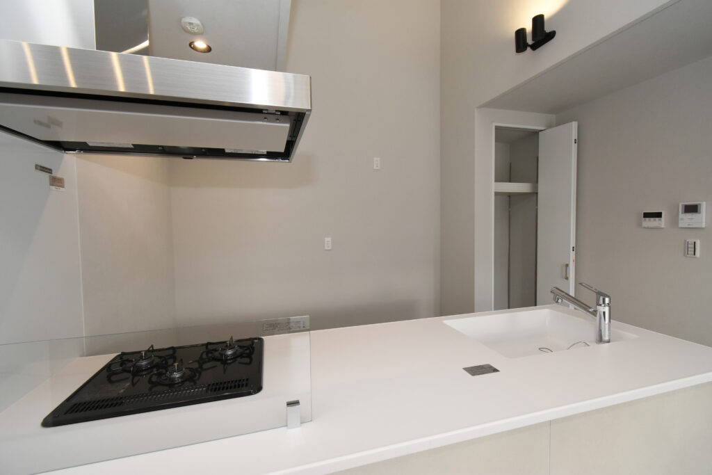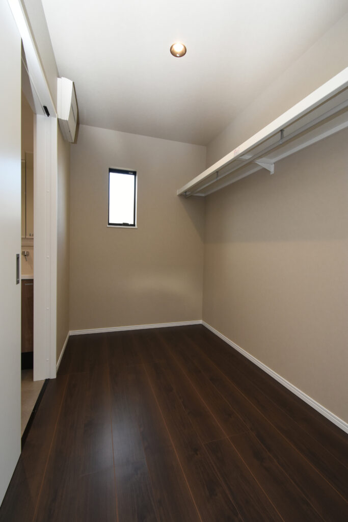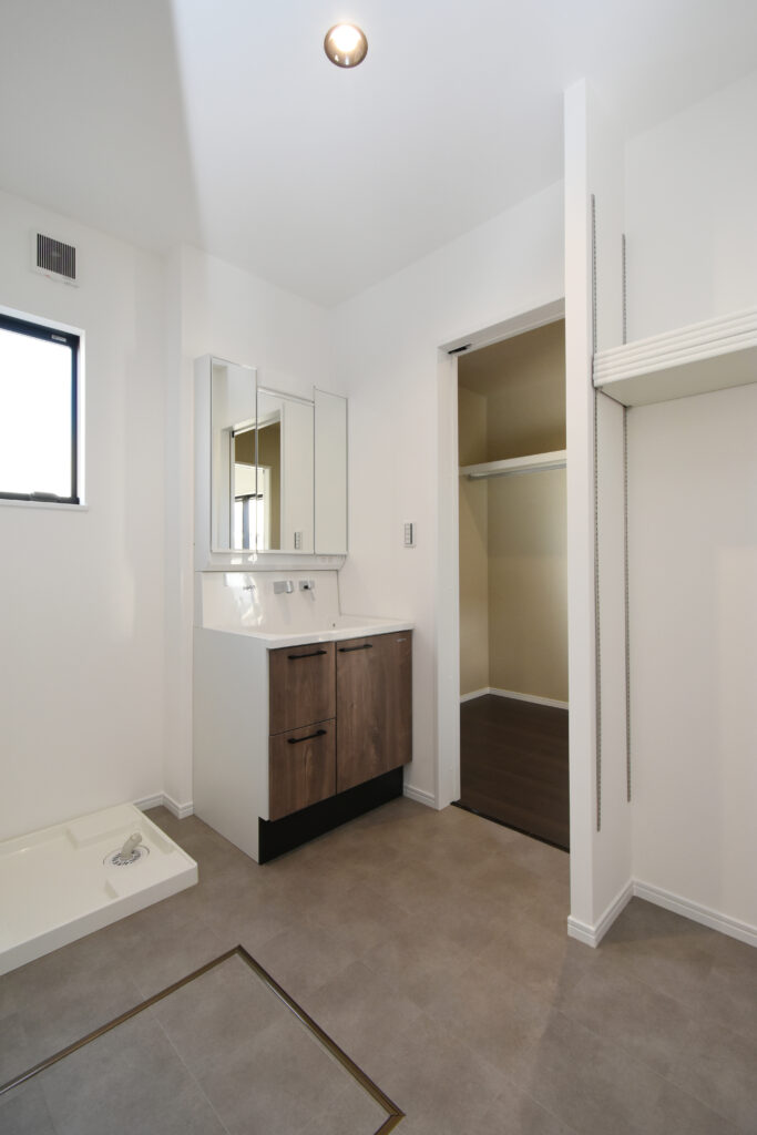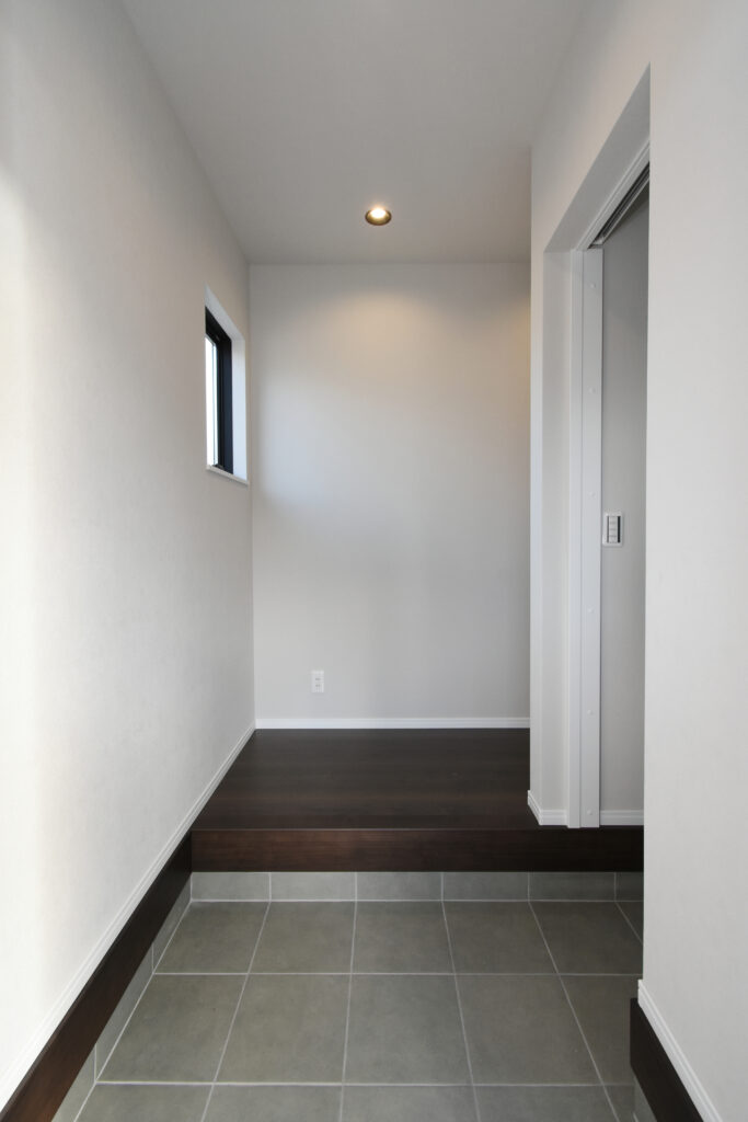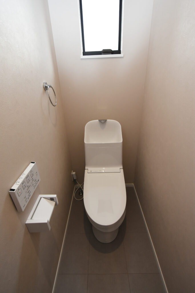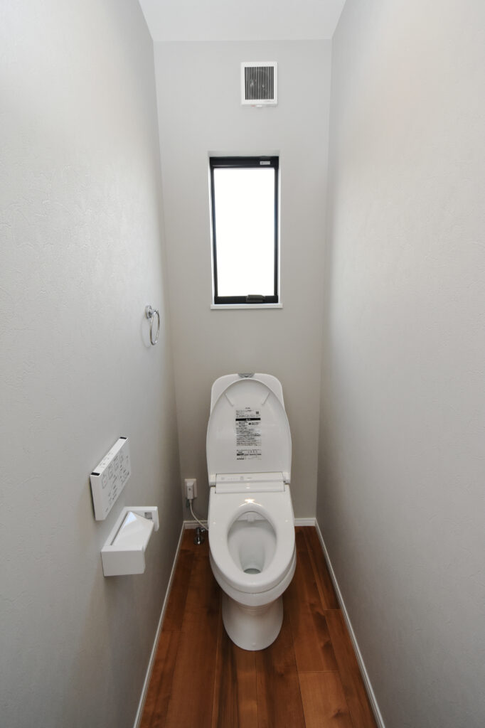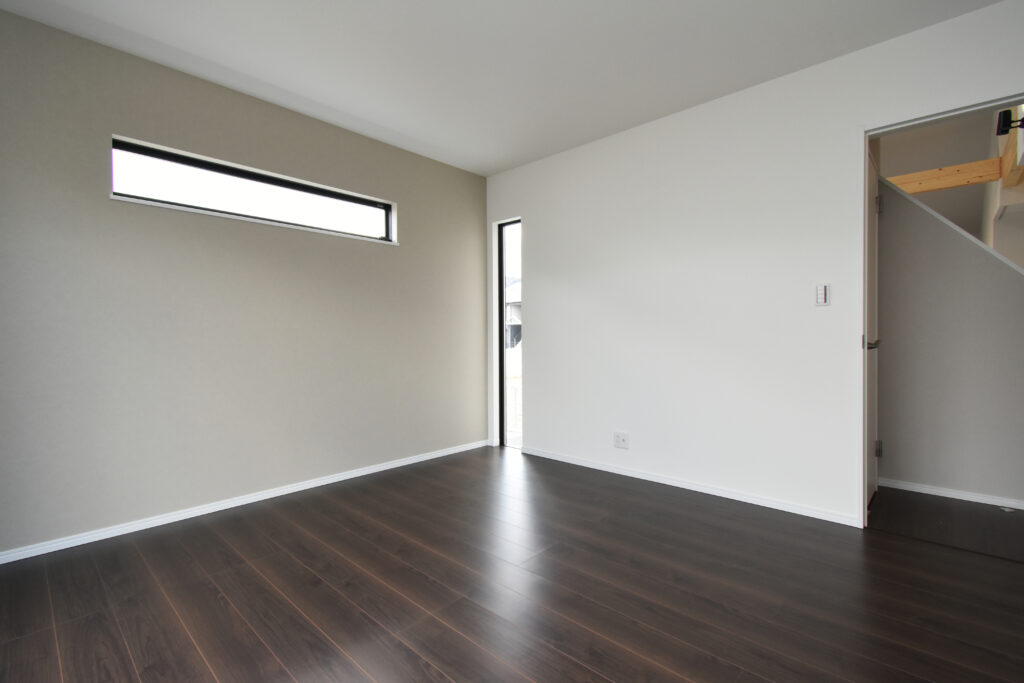 大屋根が美しい、平屋風2階建て 片流れの大屋根が印象的なデザイン 縦長の敷地を活かし、2階から1階まで大屋根をかけたインパクトある外観。道路に面した正面は窓を少なくした静かな表情、そこに大屋根の迫力と、外構のデザインがアクセントになっています。 美しい吹抜けの風景 リビングから2階を見上げると、大屋根の勾配を生かした吹き抜けと梁が交差する美しい風景が目に入ります。リビング階段は、2Fとのつながりという機能面と、インテリアとしての造形面を担っています。薄いグレーのクロスが、部屋の雰囲気をグレードアップしています。 開放的なキッチン! ミディアムカラーのフローリングに対して、ホワイトでまとめたフルフラットの対面キッチンです。キッチン上部も吹き抜けと梁があり、とても開放的!お手伝いや会話が弾みますね。 キレイが保てる玄関 玄関から直接お部屋が見えないので、ちょっとしたお客様なら玄関で十分に対応できます。右側には大容量のシューズクロークがあり、L型に棚を配置して収納量を確保。ベビーカーやゴルフバックも収納しやすいレイアウトです。 寝室 リビングに隣接した位置にある寝室。寝室には大容量のウォークインクローゼットがあり、洗面室、トイレへの動線もスムーズです。プライベート空間なので、窓の形や配置にも工夫しました。 洗面室とお風呂 キッチンからスムーズな動線でつながる洗面室とお風呂。約3帖ある洗面室には、リネン棚があるので、着替えやタオル置き場として便利に使えます。リラックスして入浴できるように、浴室は優しいカラーでまとめました。 トイレ 1Fと2Fのトイレはイメージを変えてコーディネートしました。トイレは独立した空間なので、雰囲気を変えて楽しむのもありです! 所在地 | 滋賀県大津市階数 | 2階建て間取り | 3LDK+納戸延床面積| 102.88㎡(31.12坪)