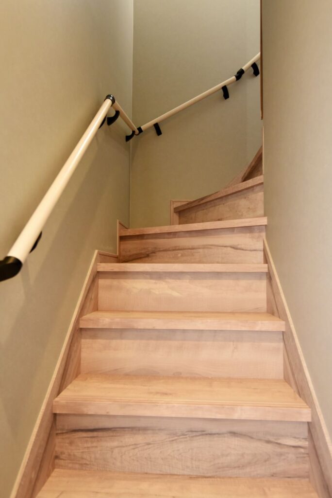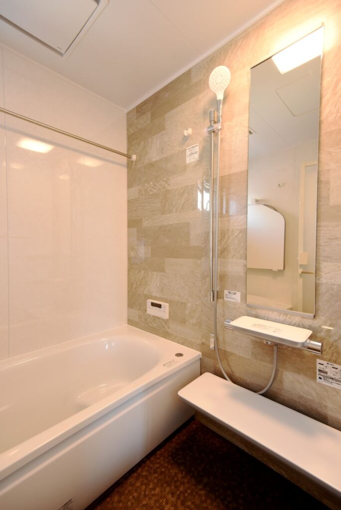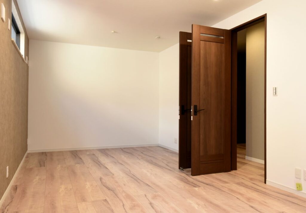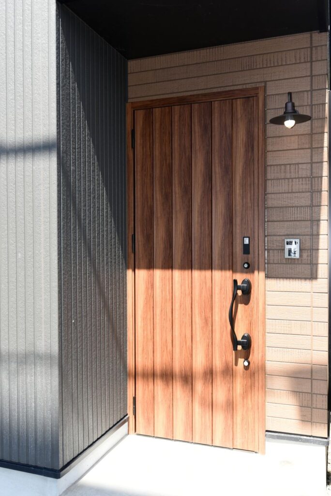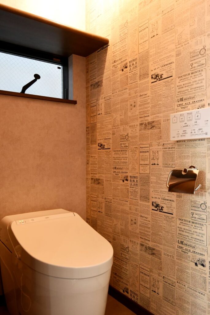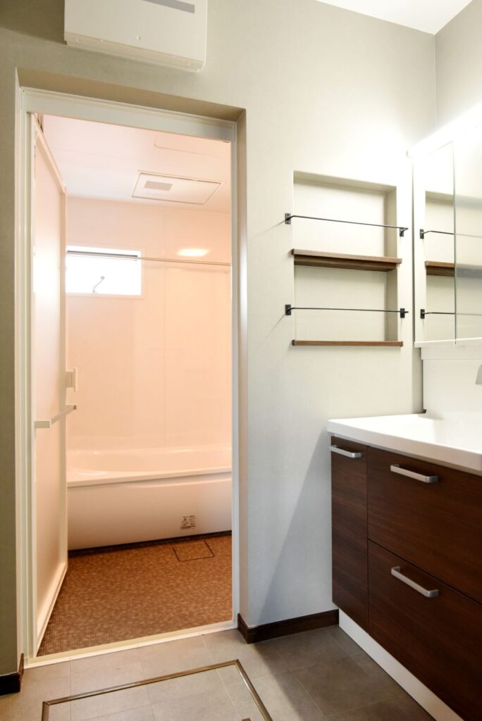 勾配天井の伸びやかなリビング 勾配天井のLDK 住宅密集地ですが、2Fにリビングを配置したので明るく、また屋根勾配を活かした伸びやかな空間となっています。見せ梁とロフトの効果で、縦の広がりも感じられます。 小上がりの和室は、ちょっと座れるし、畳下に収納スペースも取れるのでとても便利です。リビング一角の造付カウンターはワークスペースに。 フルフラットキッチン マットなブラック天板がかっこいいキッチン。フルフラットなので圧迫感もなく、おしゃれ感もかなりアップ。ダイニング側は収納になっています。 仕切れる子供部屋 今は1部屋で広く使って、将来は2つに仕切って使えるようにドアは2ヶ所設けています。 木と黒の外壁 部分的に木調サイディングを貼り分けて、メリハリをつけた外観。表情豊かになります!またビルトインガレージもあるので愛車を雨風から守ります。 水廻り 2Fに集約した水廻りスペース。2Fで家事が完結するから便利です!アクセントクロスを使ったトイレと洗面コーナーは可愛いコーディネート! 所在地 | 大阪府大阪市階数 | 2階建て間取り | 4LDK+ロフト延床面積| 97.70㎡