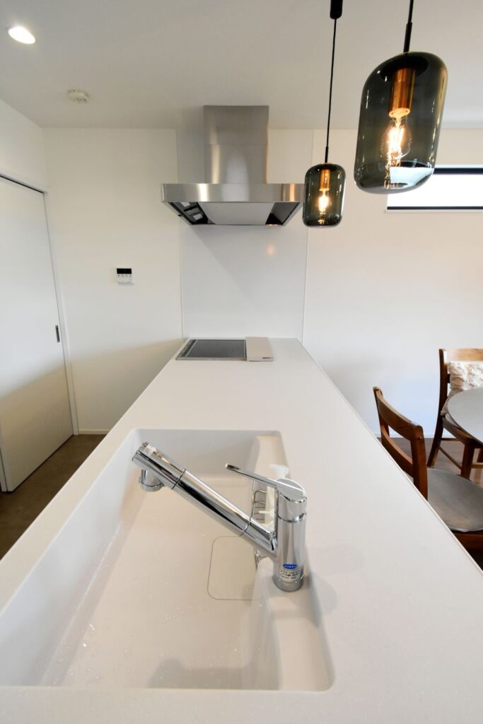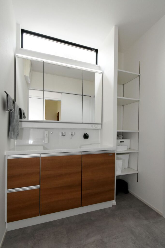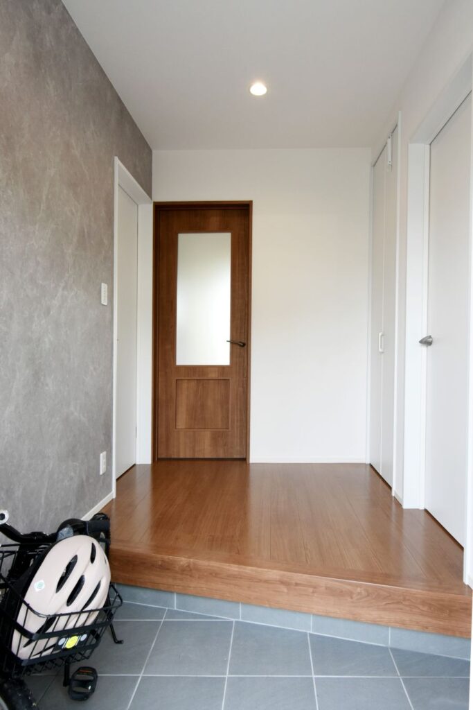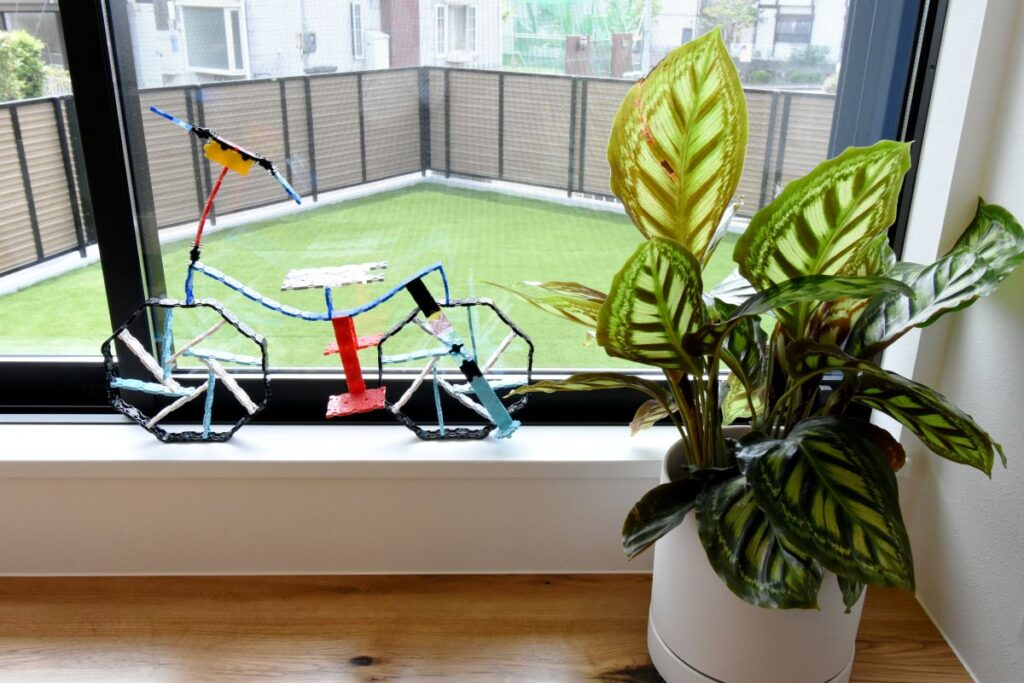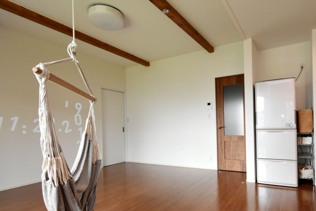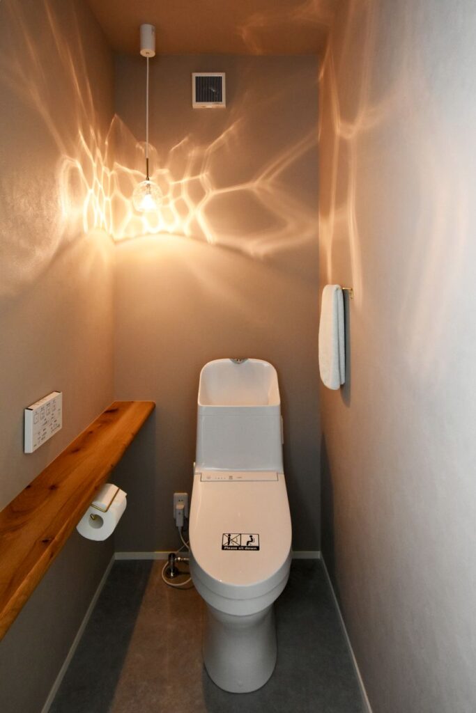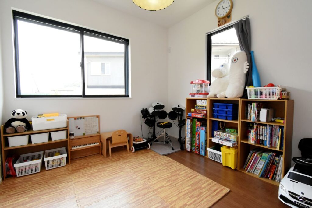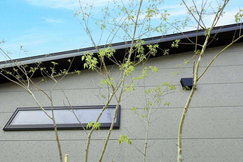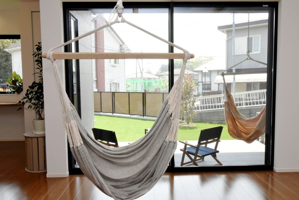 子育て世帯が選んだ平屋建て お庭に向かってオープンなデザイン グレー×木の調和が美しい平屋のお住まい。道路側は小さめの窓でプライバシーを守り、広いお庭側に開けた明るいリビング。当社設計士を交えながらしっかりとプランの打合せをし、手書き図面とパースの提案にほれ込んでくださいました。 使いやすさとデザイン性のある玄関 シャープな片流れの外観に、木目調の軒天と玄関引戸が自然で温かみのある印象を与えてくれます。照明、ポストはブラックで統一した整った表情の玄関です。 収納量抜群の玄関 上がり框を斜めに配置することで少し広くなった土間に、お子様の自転車がちょうど格納できました。シューズクロークには靴や傘などが整然と収納され、身支度のしやすさが想像できます。 家具も収納も計算されたLDK 家の中心にあり、家族が自然と集まるLDK。フルフラットキッチンは天板が広くて使い勝手がよく、お料理中も会話が弾みます!スッキリ暮らしたいとのご要望で、窓際の両サイドに収納を設け、書類やルンバの基地としました。家具と照明でどこを見ても美しくコーディネートされています。 梁とハンモック リビングの家具は「ハンモック」だけという気持ちよさ。テレビやテレビ台は置かず、プロジェクター用壁紙に映像や時計も映すスタイルです。 仕事部屋 ミュージシャンのご主人様のかっこいい仕事部屋。楽器を壁掛けにする前提で、下地も入れてあります。壁の幅ぴったりサイズのデスクは、なんとご主人様のお父様が作られたそうです! 子供部屋と寝室 お父様の影響か、かっこいいドラムセットがある子供部屋。お子様が片づけしやすい工夫がいっぱい!寝室は高窓にして、ゆっくり休める空間に。 水廻り空間 洗面室と脱衣室は引戸で仕切ることができるので、お風呂と洗面が同時に使えて便利!室内干しのため、脱衣室にはパイプも設置しました。そしてカフェのようなおしゃれなトイレ空間!照明の反射が映えるように、濃いめのクロスをお選びいただくよう設計からアドバイスさせていただきました。トイレシールもおしゃれです♪ 庭と外構の役割 人工芝を敷き詰めた広いお庭。タイル仕上げのテラスは、室内とも室外とも使えるゆとりの空間です。植栽が美しく配置されたアプローチは、シンボルツリーの成長も楽しみな空間!家の付加価値を上げてくれる外構までこだわった素敵なマイホームの完成です。 所在地 | 滋賀県大津市階数 | 平屋建て間取り | 3LDK延床面積| 84.05㎡(25.42坪)