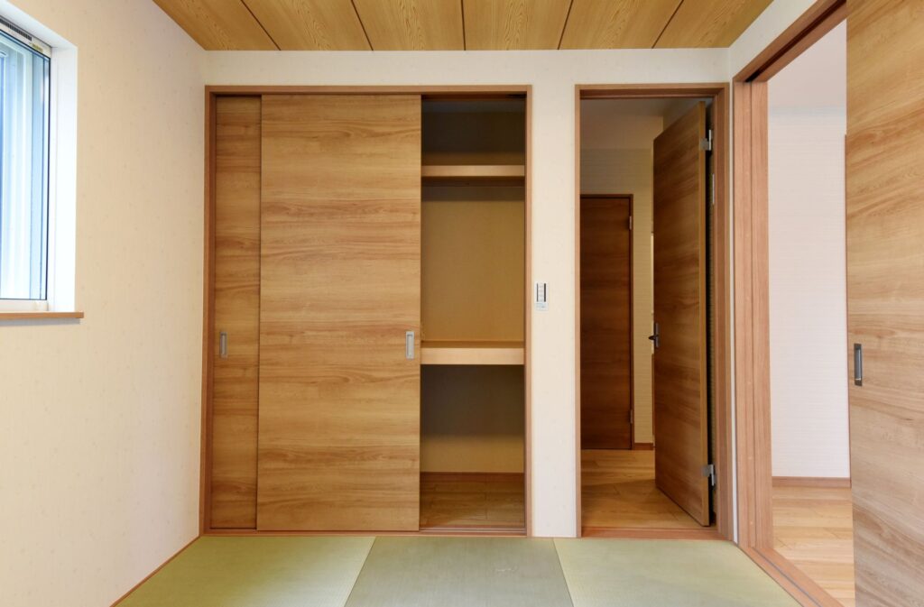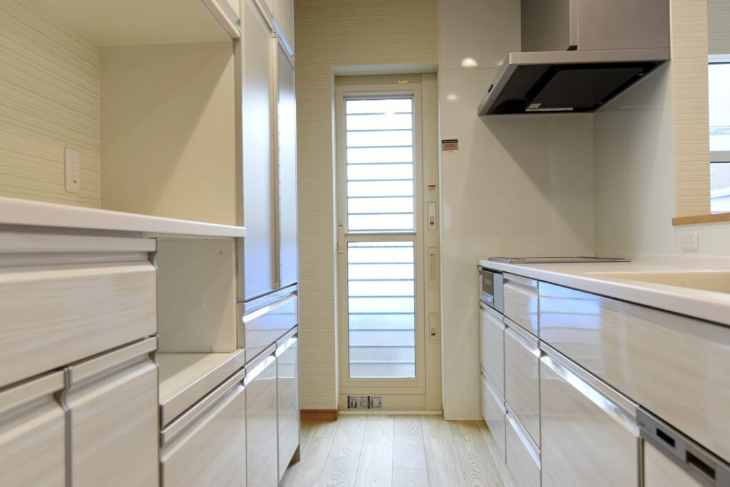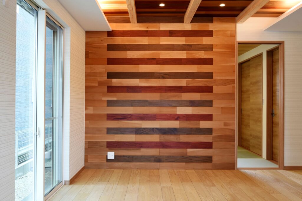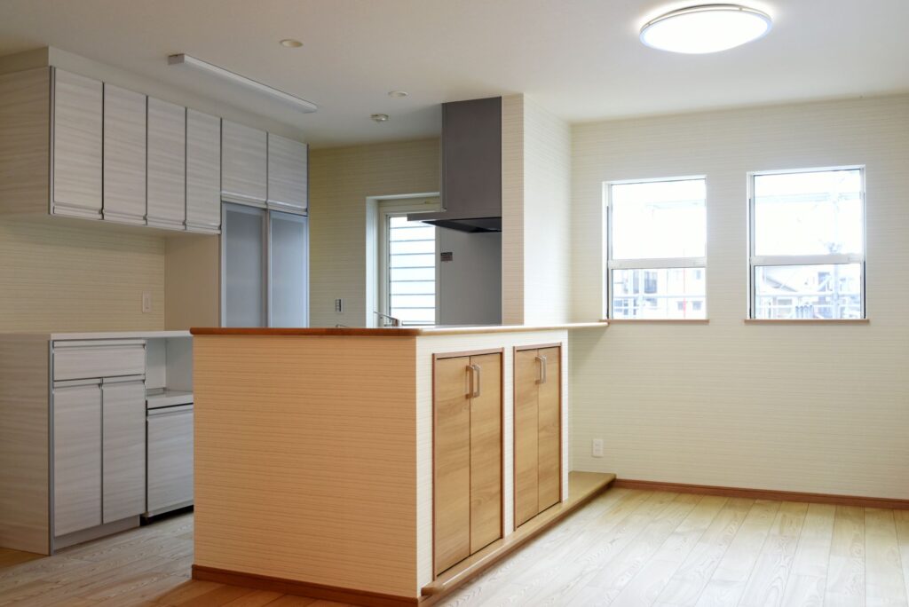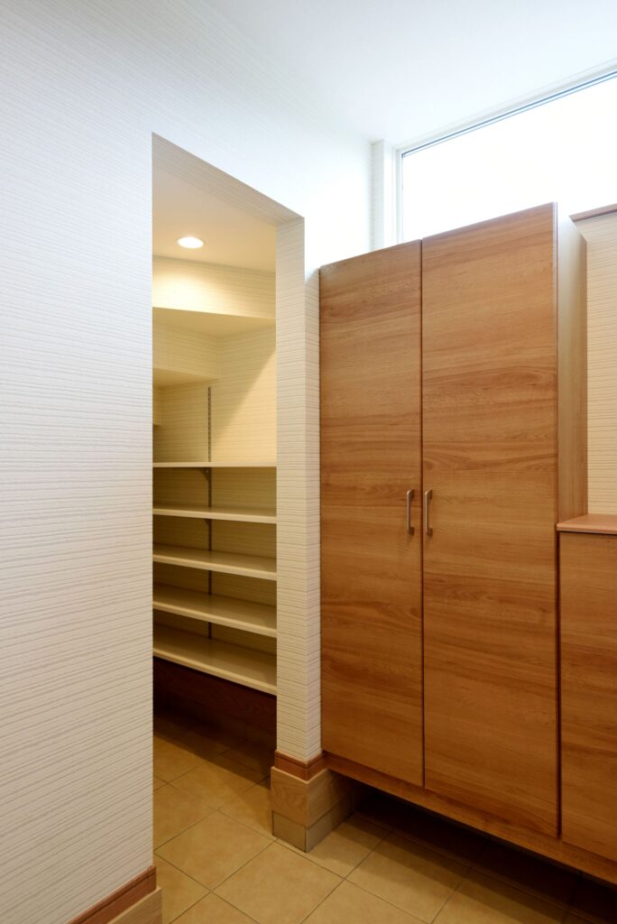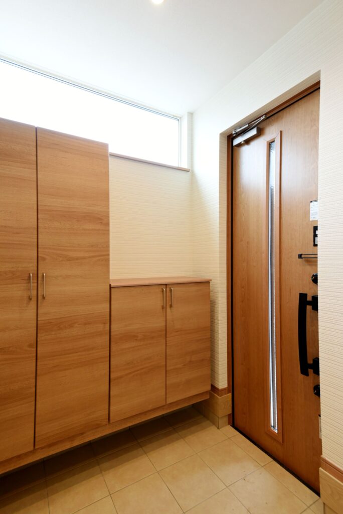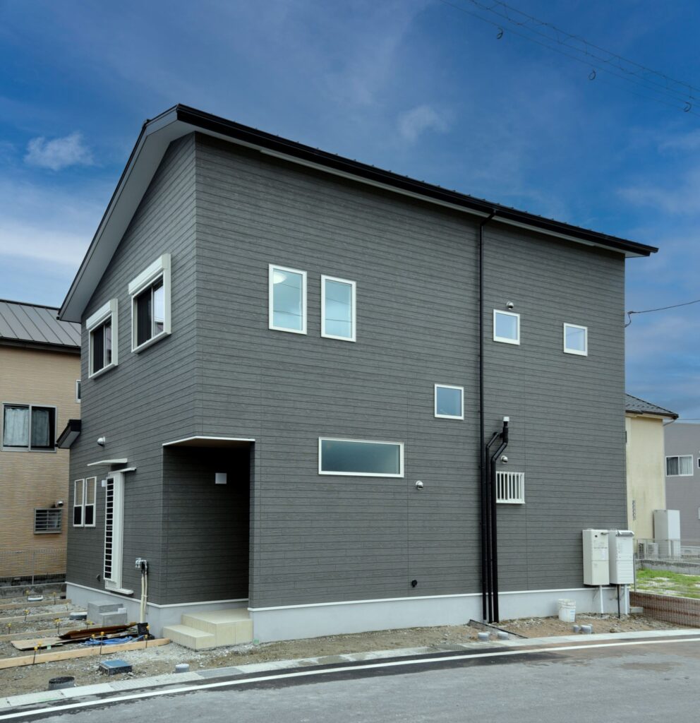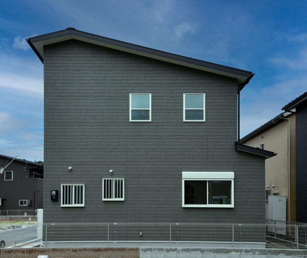 グレーのお家 グレーの外壁 外壁はグレーの木調サイディングにホワイトサッシを合わせ、優しい印象にまとまっています。 収納たっぷりの玄関 壁付けの大型玄関収納だけでなく、階段下を利用したシューズクロークも確保しました。靴もベビーカーもゴルフバックもたくさん収納できます! 木のアクセントパネル リビングの1面に木のアクセントパネルを施工しました。インテリアに本物の素材が入ると、グレードアップしますね。 キッチン キッチン周りを腰壁で囲ったゆったりサイズの対面キッチンです。ダイニング側に収納を付けたので、カトラリーの収納にあててもいいですね。カップボードも同色の扉で揃えました。 水廻り お掃除しやすい清潔感のある水廻りです。 所在地 | 滋賀県大津市階数 | 2階建て間取り | 4LDK+S延床面積| 117.49㎡
