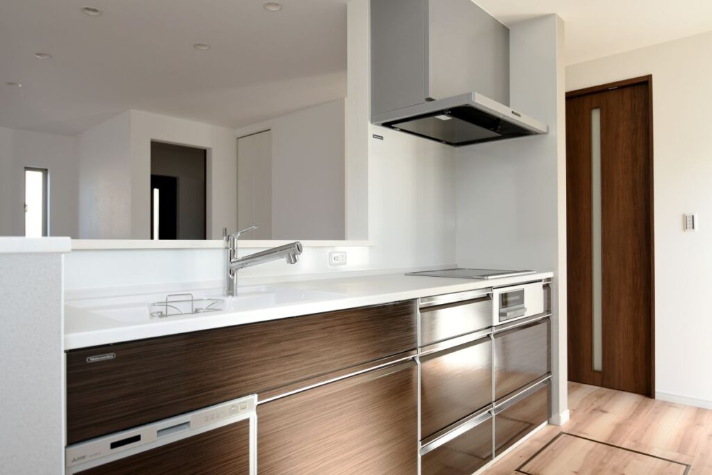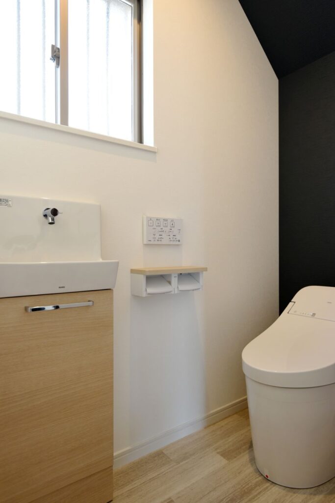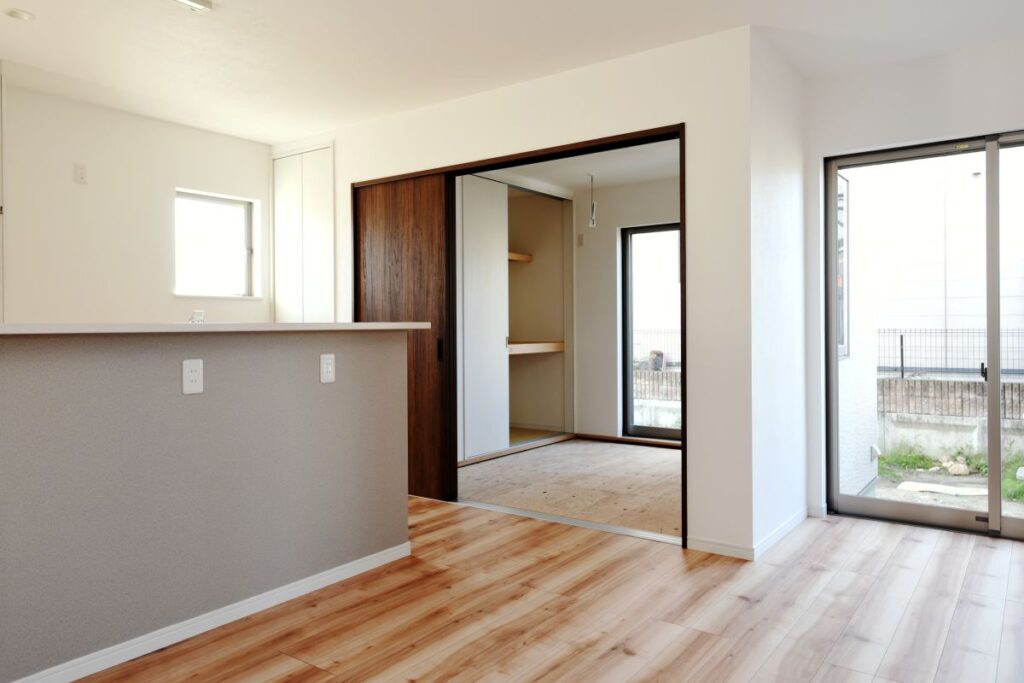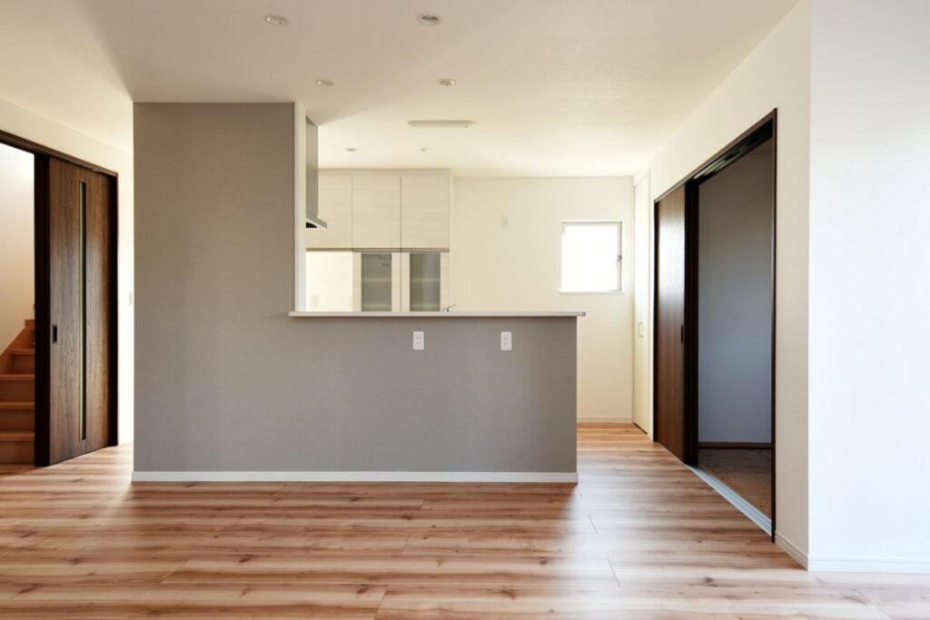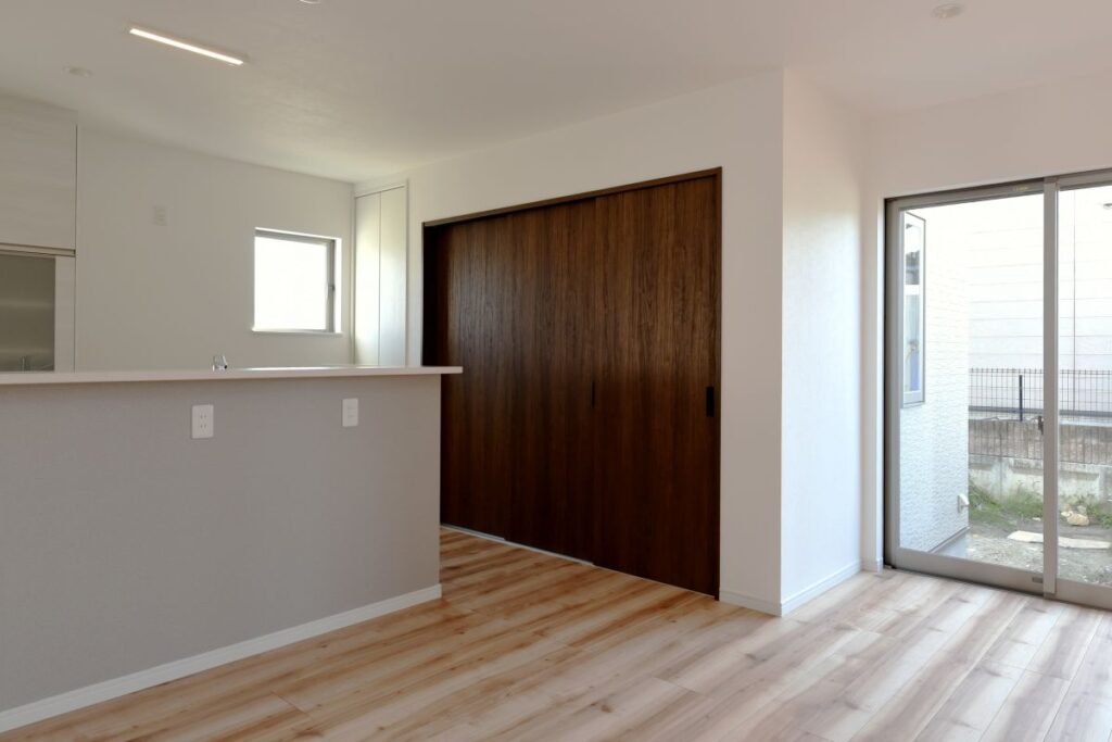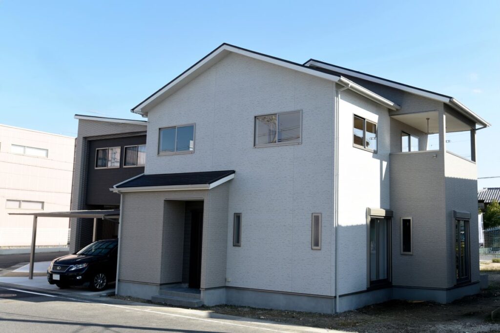 センターキッチン センターキッチン キッチンの廻りをぐるりと回遊できるプラン。キッチンを中心に、和室や2Fへの動線があります。家族の気配が感じられる安心できる間取りです。 白とグレーの優しい外観 優しい色合いの外観です。玄関には約2帖分のシューズクロークがあり、コート掛けもあるので、外出時も帰宅時も大変便利です! 洋室 2階は個室の空間。各部屋ともクローゼット完備で収納が充実しています。 水廻り 1Fに集約した洗面室とお風呂は、リビングや玄関からは見えず、なおかつアクセスしやすい位置に配置しました。キッチンから近く、短い家事動線が便利です。 所在地 | 滋賀県栗東市階数 | 2階建て間取り | 4LDK延床面積| 115.25㎡