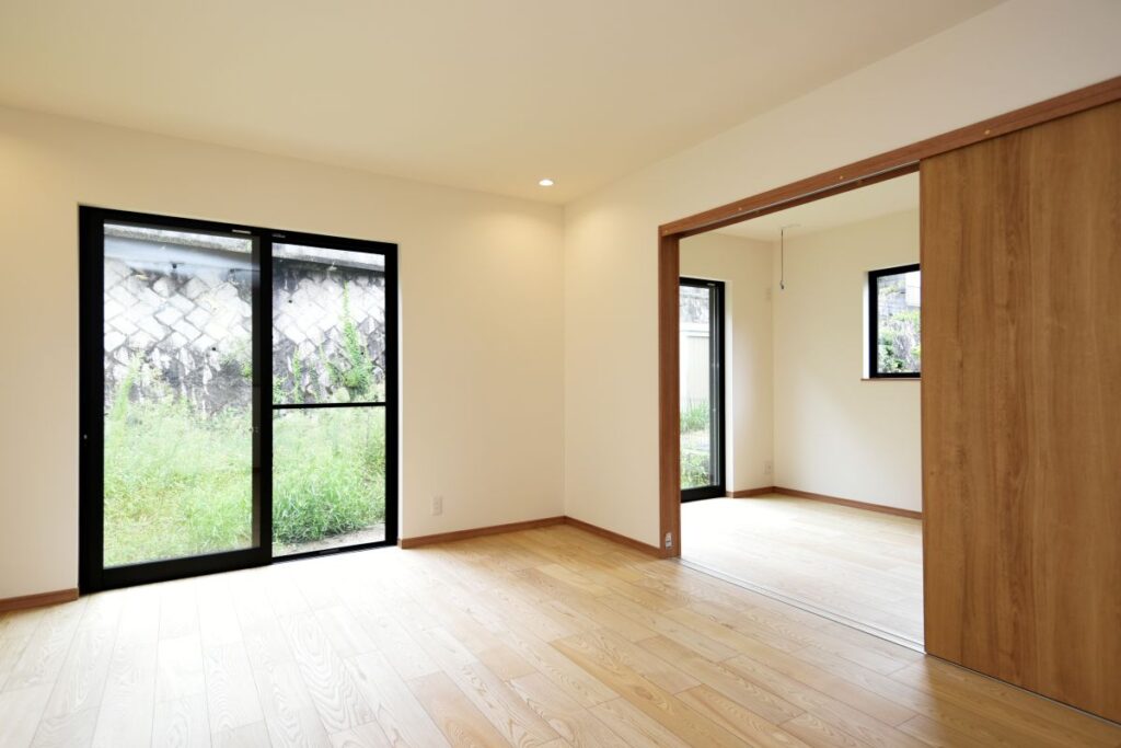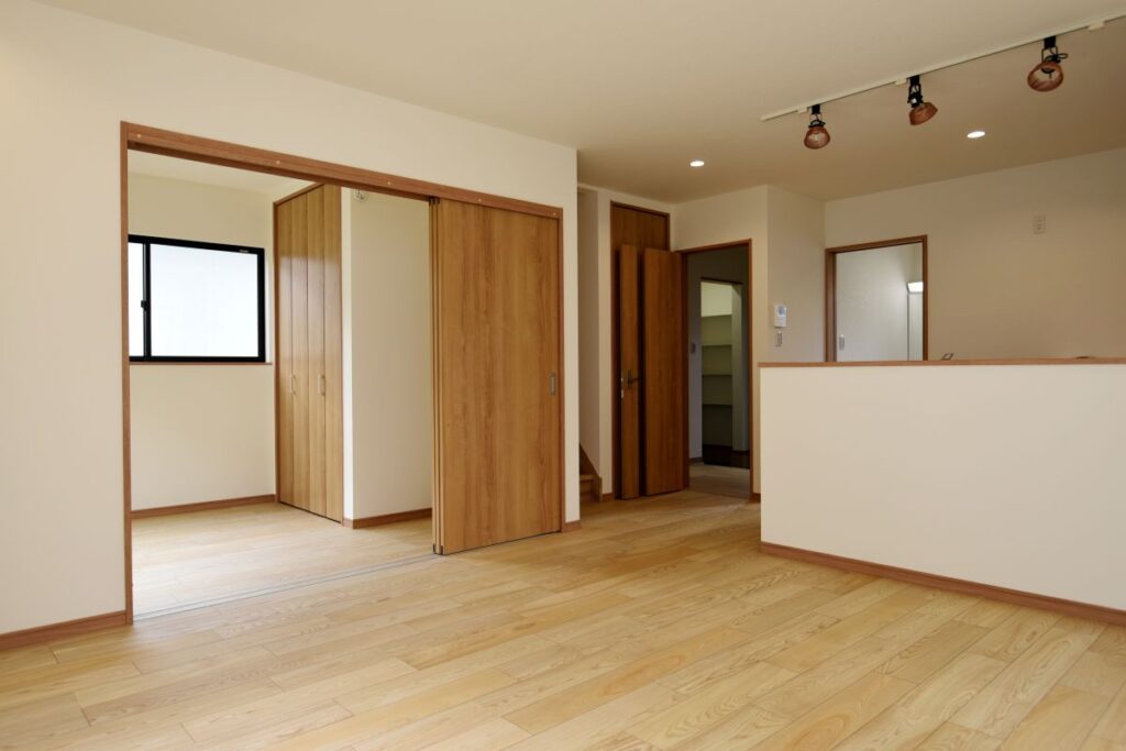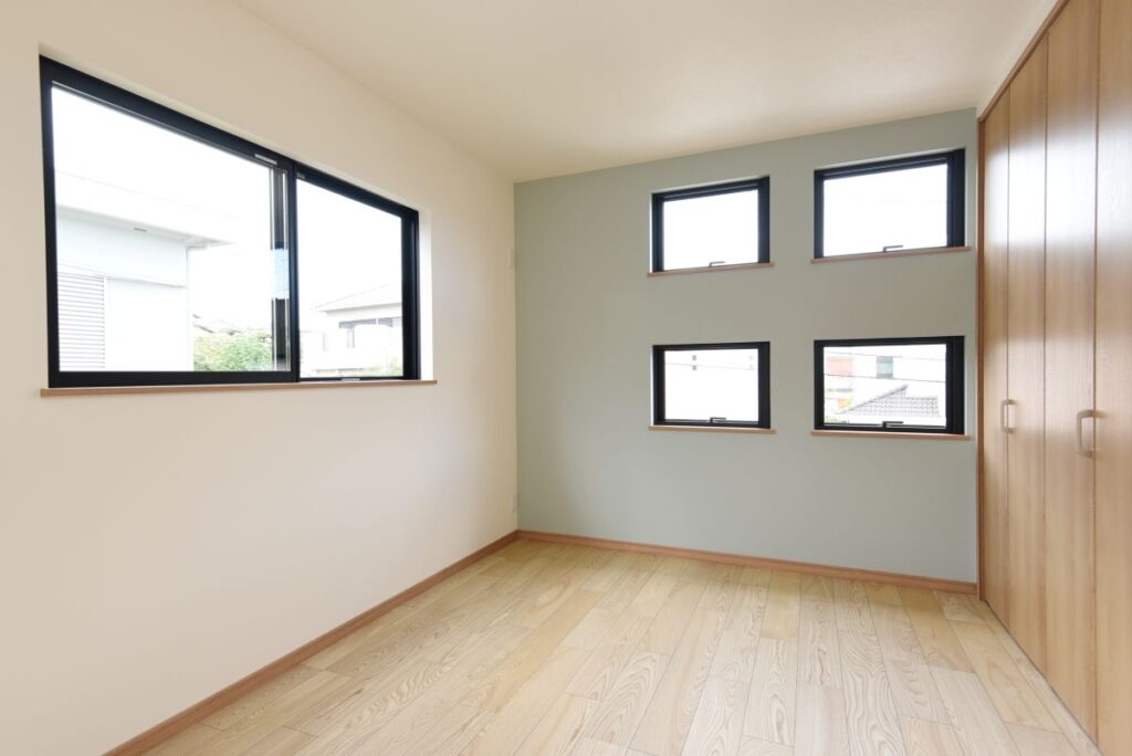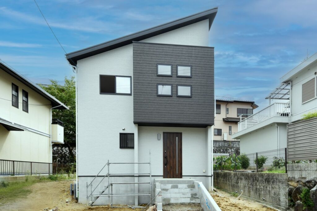 白×グレー 白×グレー 外壁にアクセントを付ける場合は、間取りの凹凸がある部分を貼り分けるとまとまりやすいです。こちらはホワイトとグレーの木調サイディングを使用しました。 ナチュラルカラーのインテリア キッチンを中心に、洋室、水廻り、2階へのアクセスが便利な動線です。 洋室 主寝室にはWICを設け、たっぷりの収納量を確保しました。 水廻り お掃除ラクラク仕様の水廻りです。トイレは11F、2Fで印象を変えて楽しみました。 所在地 | 奈良県生駒市階数 | 2階建て間取り | 4LDK延床面積| 101.85㎡